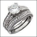 Matching Set 1.5 Round Center Pave Curved Cubic Zirconia Cz Ring