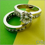 Classy matching set with AAA quality round stones in tiffany style 6-prong setting & channel set stones on the band.