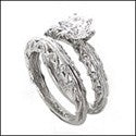Matching Set 1.5 TCW Round Center Pave Cubic Zirconia Cz Ring