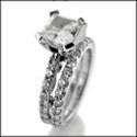 Elegant Engagement ring and a matching band with AAA high quality princess cut stone set in four prongs pave covered setting. Shank has prong set round small stones in eternity setting. The bezel set stones are in the gallery of the engagement ring.