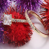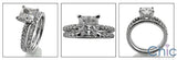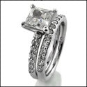 Classy matching ring set with 1.0 princess cut AAA high quality cubic zirconia in prong setting. Narrow 2.5 mm wide bands (each) with pave/prong set round stones.