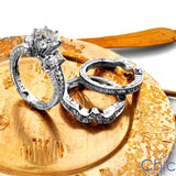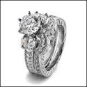 Matching Set 1 Ct Round Center Engraved Fitted Cubic Zirconia Cz Ring