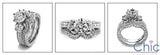 A superb matching band with engraved shank and polished shank, with high quality round cut cubic zirconia center stone, with high quality oval cut cubic zirconias on the sides, and the matching band has high quality small round cut cubic zirconias set in pave all the way around.