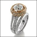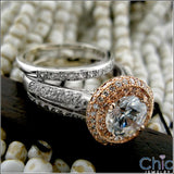 Cubic Zirconia Two Tone Rose Gold Matching Engagament Set 1 Ct Round Center Rose Pave Cz 14k White Gold Ring