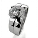 A beautiful solitaire with an AAA high quality round cut 1 carat center cubic zirconia in a half bezel setting, accompanied with a fitted matching band.