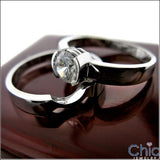 Matching Set 1 Ct Round Half Bezel Ct Fitted Wedding Cubic Zirconia Cz Ring