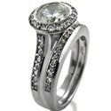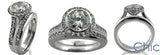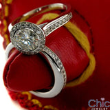 Matching Engagement Ring Set 1 Ct Round Cubic Zirconia In Halo Pave and Wedding Band 14K W Gold