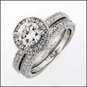 1 Ct Round Cubic Zirconia Engagement Ring Halo Pave Engraved Shank with Matching Cz Wedding Band 14K Gold