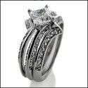 Matching Set 2.3 TCW Princess Pave Double Wedding Cubic Zirconia Cz Ring