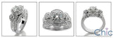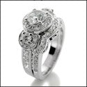 This engagement ring dazzles with AAA high quality cubic zirconias that embrace its round brilliant stones that are set in prong setting. Sides have combination of round and princess cut stones in pave and channel setting. Rose gold detail is it demonstrated from back and front view of the engagement ring. Gallery underneath, heavy shank. The matching band has the exaCt contours to match the engagement ring, and it has small pave set round stones as well.