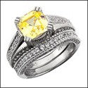 Matching Set 2.5 Canary Asscher Paves Cubic Zirconia Cz Ring