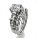 CZ Matching Engagement Ring Set 2.75 TCW Round Center Pave Cubic Zirconia Sides 14K W Gold Ring