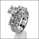Matching Set 2.8 Round Center Share Prong Cubic Zirconia Cz Ring