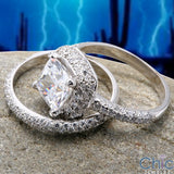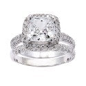Matching Set 2 Ct Cushion Center Pave Cubic Zirconia Cz Ring