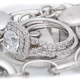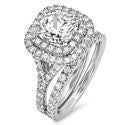 Matching Engagement Ring Set 2 Carat Cushion Pave Cubic Zirconia 14K White Gold