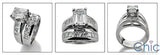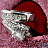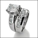 Gorgeous ring with AAA high quality two carat emerald cut cubic zirconia in prong setting and high quality cubic zirconia's set in channel on the sides. Matching band has princess cuts in channel setting as well.