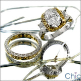 Matching Set 2 Ct Oval Ct Canary Pave Halo Two Tone Eternity Cubic Zirconia Cz Ring