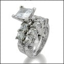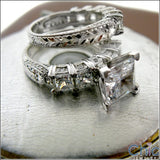 Matching Set 2 Ct Princess ring HCt Engraved Cubic Zirconia Cz Ring