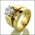 Matching Set 2 Ct Round 6 Prong Wide Engagment Plain Cubic Zirconia Cz Ring