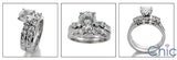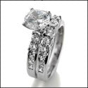 A stunning matchingt ring set with high polished shank, with AAA high quality round cubic zirconia center stone, with high quality round cut cubic zirconias on the sides, and princess cut zirconias in channel setting on the shank.
