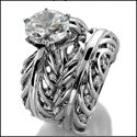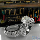 Breathtaking matching band accented with small pave set stones and 2 Ct . round center AAA quality CZ’s set in six prongs Tiffany setting