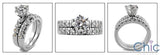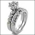 A beautiful gorgeous matching band with high polished solid shank, with round cut AAA quality diamond color cubic zirconia center stone set in 6 prong tiffany setting, with round cut high quality diamond color cubic zirconia stones set in prong setting on the sides of the engagement ring, and with round cut cubic zirconia stones flushed sitting on the band.