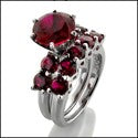 Matching Set 2 Ct Ruby Center Round in Prongs Cubic Zirconia Cz Ring