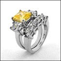 Matching Set 3 Ct Canary Radiant 5 stone Princess Cubic Zirconia Cz Ring
