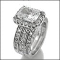 Matching Set 3 Ct Radiant Center Pave Double Cubic Zirconia Cz Ring