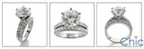 Elegant matching engagement set, topped with AAA high quality round stone in Tiffany 6 prong setting, sides and the matching band have small round stones in shared prongs.