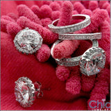 Matching Set 4 Ct Round Pave Wedding Cubic Zirconia Cz Ring