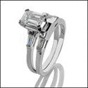 0.75 emerald cut diamond quality cubic zirconia center stone, with tapered baguettes.