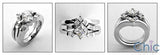 A modern matching band with high polished solid shank, and a high quality princess cut cubic zirconia in bezel setting with princess cut cubic zirconias in channel setting on the sides.