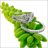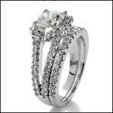 14K White Gold Matching Set .85 Center Round CZ Engagement Ring with Wedding Band