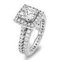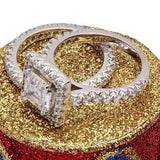 Asscher Cut Cubic Zirconia 1.5 Carat Center Matching Engagement Ring Set With Halo Pave