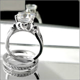 Heart Holding Hands Asscher 2.5 Carat Cubic Zirconia Ring With a Band in Pave 14K White Gold