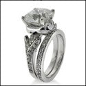 Asscher cut cubic zirconia engagement ring with a matching eternity band. This elegant cz engagement ring set is showcasing a 2.5 carat AAA high quality, IGI certified Asscher cut center stone. The Asscher cut cubic zirconia is set in prongs setting. The gallery is showcasing a traditional Irish symbol of hands holding heart. The heart and hands represent love and loyalty. The crown like sides of the shank are set with small round stones in pave setting. The cubic zirconia eternity band has pave set stones all the way around the wedding band. The cubic zirconia asscher cut engagement ring and eternity band are made in solid 14K white gold . "14K" stamp is inscribed.