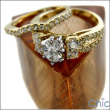 Matching Set Oval 1.5 Center Pave Set Curved Cubic Zirconia Cz Ring
