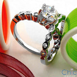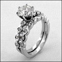 An exquisite matching band with high polished solid shank, and a high quality round cubic zirconia center, with round cubic zirconias in pave settings on the shank.
