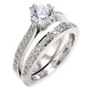 Round 1 Carat Cubic Zirconia Matching Engagement Ring Set Euro Shank Pave Sides 14k W Gold