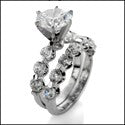 Matching Set Round 2 Ct 6 Prong Center Shared Prong Wedding Band Cubic Zirconia 14K W Gold Ring