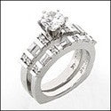 Matching Set Round Center Baguettes 1.4 Ct Euro Shank Cubic Zirconia Cz Ring