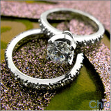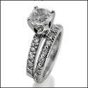 Matching Set Tiffany Celebration Style 1 Ct . Round Engagement Ring Eternity Band Cubic Zirconia 14K W Gold