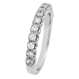 Elegant 13 round stones AAA high quality, IGI certified cubic zirconia wedding band.This 3mm top, and 2.5mm shank wedding band is set with round cz in prong setting. Each stone is 0.03 carat.