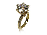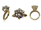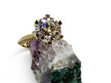 This 4.5 Carat AAA High Quality IGI certified Cubic Zirconia Engagement Ring is for people that love tall/high profile settings. The 4.5 carat CZ is set in 6 prongs setting. The prongs are jeweled with micro pave small round stones. The knife shank is 3.25mm wide and has stones in 4 rows. The engagement rings sides stones go half way down the shank. This engagement ring has more than 150 stones.Solid 14K Yellow Gold