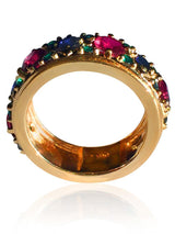Sapphire Ruby Emerald Round Cubic Zirconia Band 14k Yellow Gold