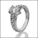 Solitaire 1 Ct Pear shape Engraved Shank Cubic Zirconia Cz Ring