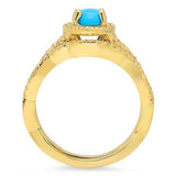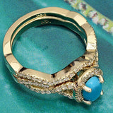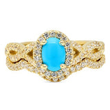 Turquoise Oval Shape Center Stone Matching Engagement Set in 14K Gold
