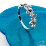 A superb wedding band with high polished solid shank, with high quality clear color round cubic zirconias set in bezel, clear marquise cubic zirconias set in bezel setting.