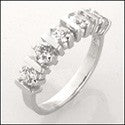 A stunning wedding band with a high quality polished shank and five high quality cubic zirconias in prong setting.